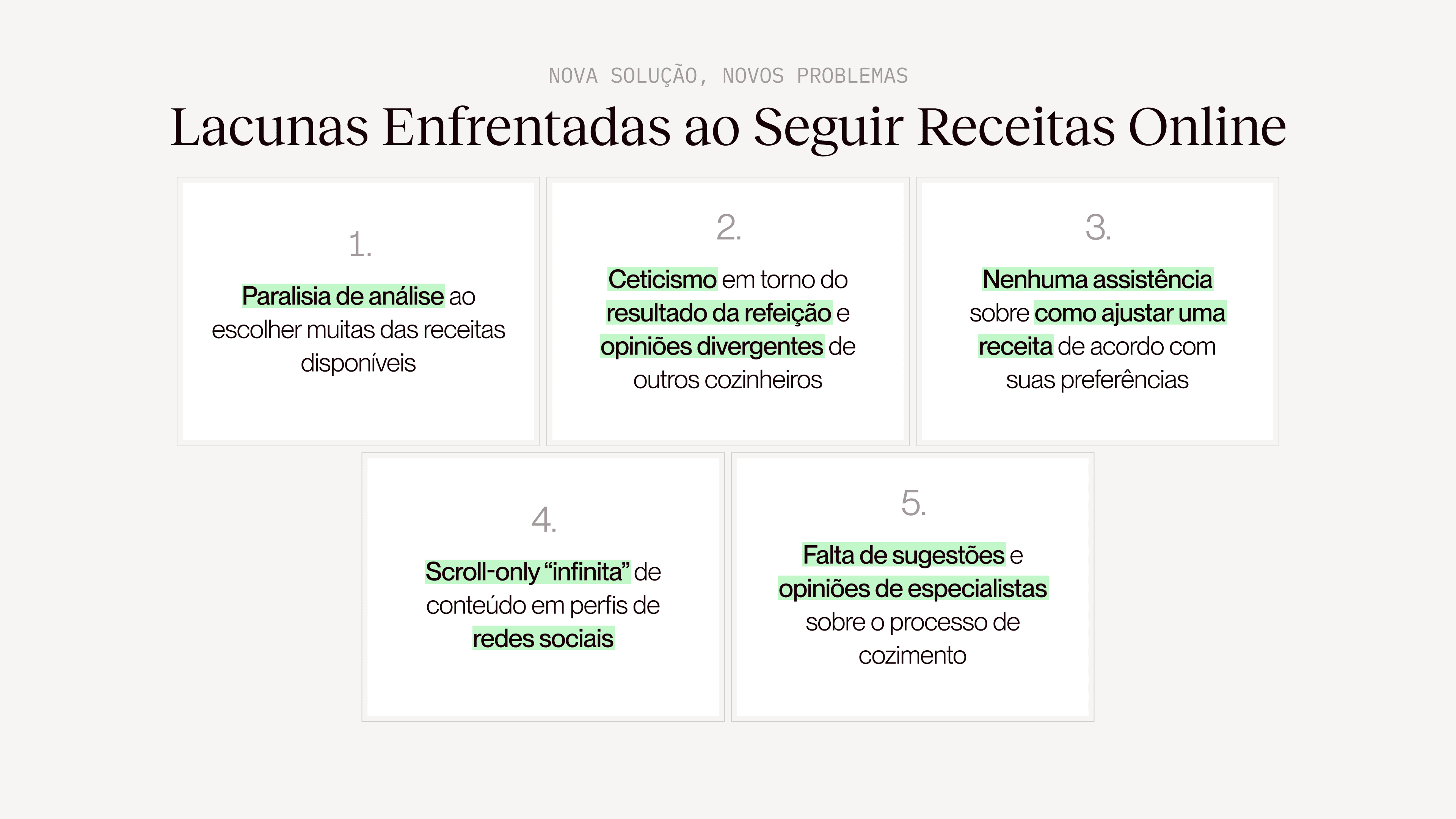 Este projeto surgiu após ler o artigo “Is Social Media The New Google?” que me levou a questionar como busco e preparo receitas atualmente e a expandir essa reflexão com amigos e familiares acostumados a receber convidados ou a lidar com restrições alimentares.
