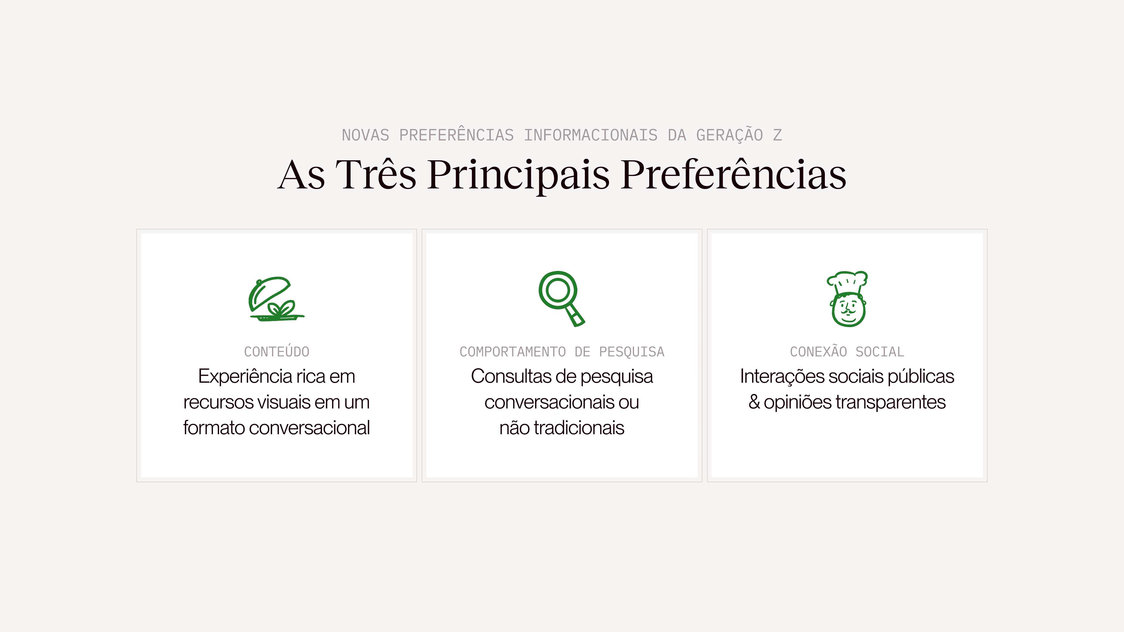 Reconhecida até mesmo pelo VP Sênior do Google, essa mudança indica uma redireção a formatos que se alinham melhor às novas preferências informacionais dessa geração.